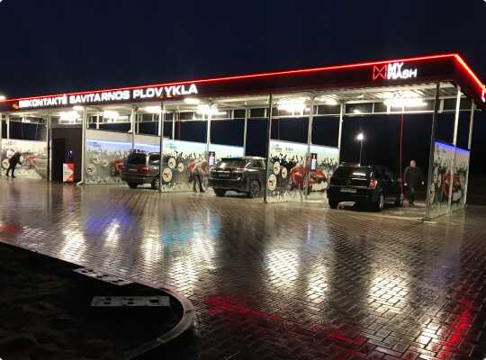 Díky kombinaci zkušeností těchto společností vznikl koncept automyčky, která kombinuje efektivní mytí, inovační technologii a mírné provozní náklady. MyWash automyčka.